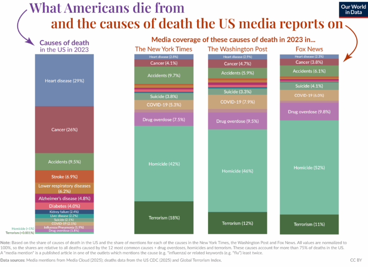 - Mortality in the news vs. what we usually die from (Source: Flowing Data)